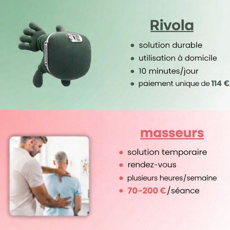 Le corps encaisse. L’esprit fatigue.En quelques minutes, Rivola™ aide à relâcher la pression et à retrouver une vraie sensation de confort, chez vous, quand vous le décidez.