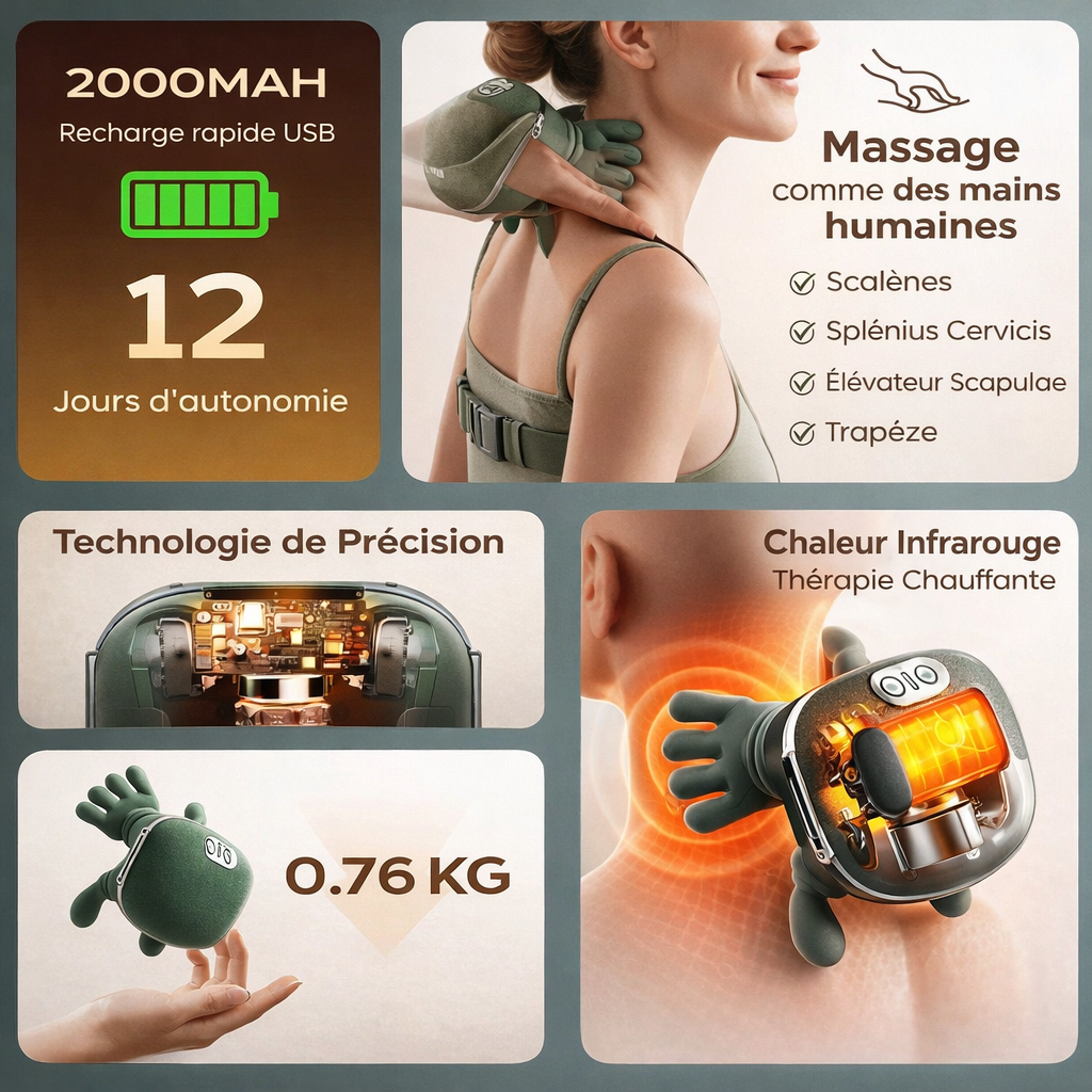 Ce masseur offre des niveaux d'intensité réglables (elevé, moyen, faible) afin que vous puissiez choisir entre un massage doux ou plus profond en fonction de vos besoins